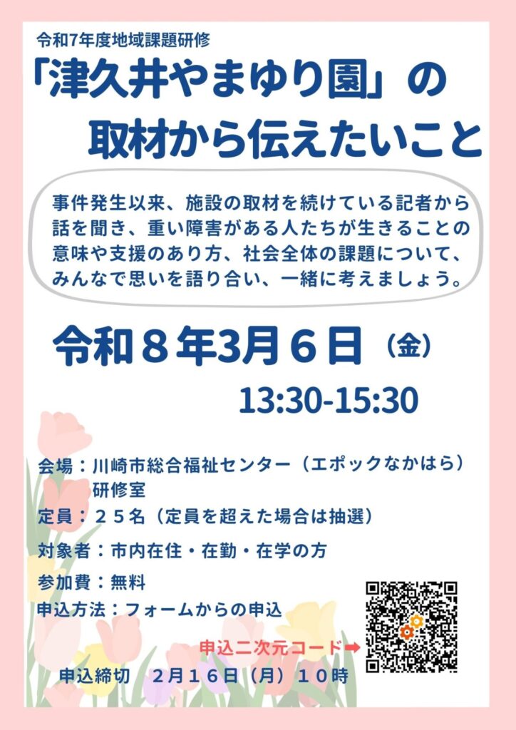 「津久井やまゆり園」の取材から伝えたいことを開催します。